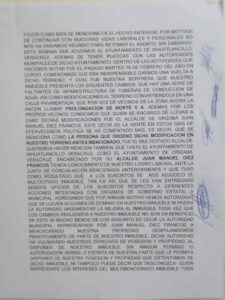 El predio, ganado en un laudo desde 2002 por Carlos Vázquez Hernández, Adolfo Pérez de Jesús, José Luis Gutiérrez Ladrón de Guevara y Abelardo Mazahua Reyes, fue intervenido sin autorización. Lo que debía ser propiedad privada se convirtió, por la mano inescrupulosa del gobierno municipal, en una calle pavimentada con infraestructura removida sin el consentimiento de sus legítimos dueños.