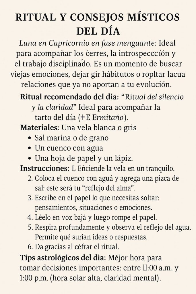 Consejo lunar: Confía, pero verifica. Y cuida tus sueños: hablan más de lo que crees.