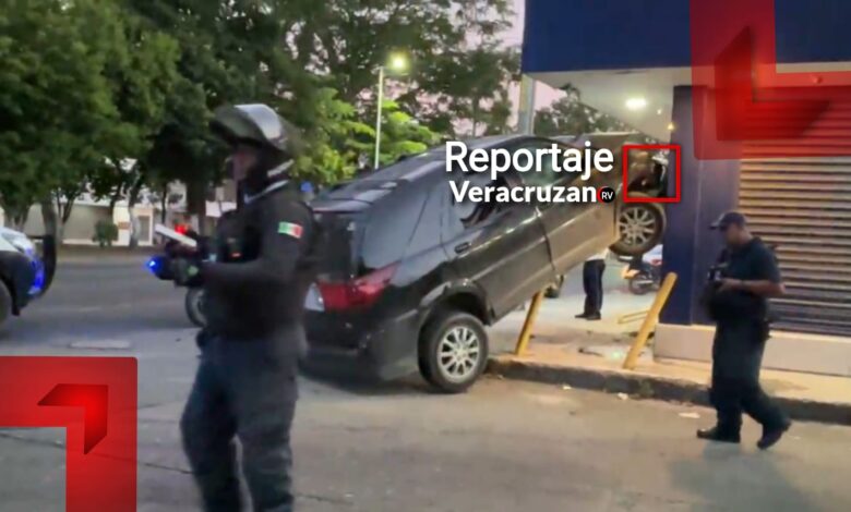 Accidente vehicular en Poza Rica: camioneta es abandonada tras impactar contra tubos de contención