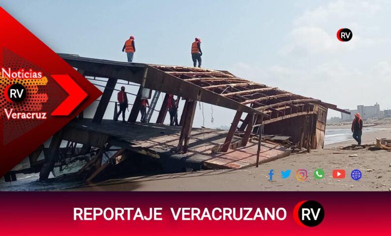 Coatzacoalcos, Ver., 29 de octubre de 2025. — Once días después de que el restaurante flotante “El Atracadero” encallara sorpresivamente en las playas de Coatzacoalcos, comenzaron oficialmente los trabajos para desmantelar la imponente estructura de 15 toneladas, que se había convertido en una curiosa atracción para porteños y visitantes.