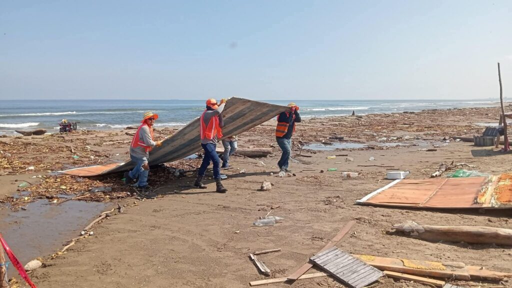 Uno de los puntos más importantes de la operación es la limpieza total del área costera, donde los trabajadores deberán retirar restos de fibra de vidrio y poliuretano, materiales que, según Fernández, no son contaminantes, pero deben ser manejados con precaución para evitar que se dispersen en la arena.