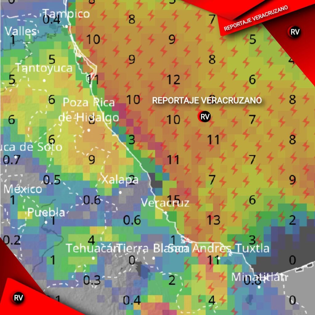 - Papantla y Espinal: Tormentas con relámpagos; mín. 22 °C, máx. 27 °C.