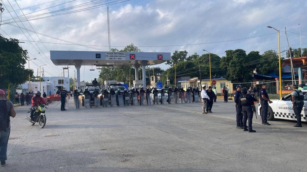 Álamo, Ver.– La mañana de este 24 de noviembre, la caseta Álamo–Cerro Azul dejó de ser un simple punto de cobro y se convirtió en un termómetro del desgaste institucional. Elementos de la Policía Antimotines tomaron posición en la zona, donde grupos de manifestantes permanecen en el marco del paro nacional convocado por transportistas y productores.