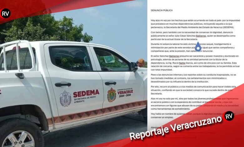Veracruz, Ver. — La Secretaría de Medio Ambiente del Gobierno de Veracruz (SEDEMA) enfrenta un nuevo y delicado escándalo interno que amenaza con poner en evidencia las grietas morales y administrativas del gabinete estatal. Trabajadores de la dependencia denunciaron —a través de una carta abierta enviada a diversos medios— el presunto acoso sexual, hostigamiento laboral y abuso de poder perpetrado por Faustino Sánchez Baltierrez, actual secretario particular de la titular de la SEDEMA.
