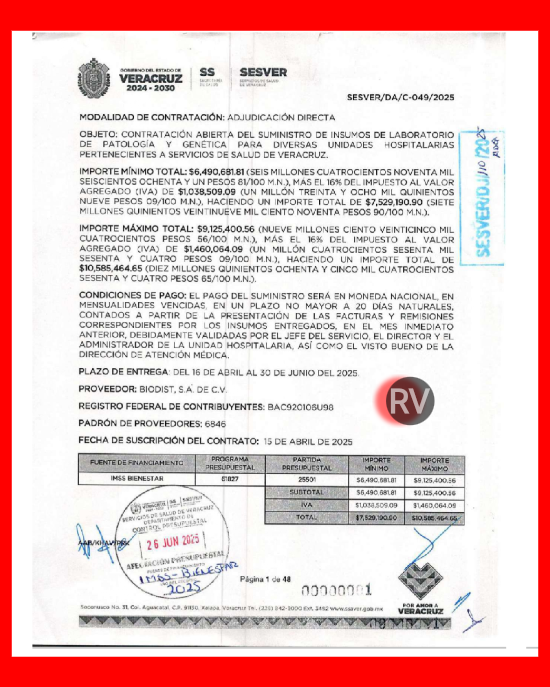 Toda compra realizada por SESVER requiere el visto bueno del delegado de IMSS-Bienestar en Veracruz, Roberto Ramos Alor, aliado histórico de Nahle.