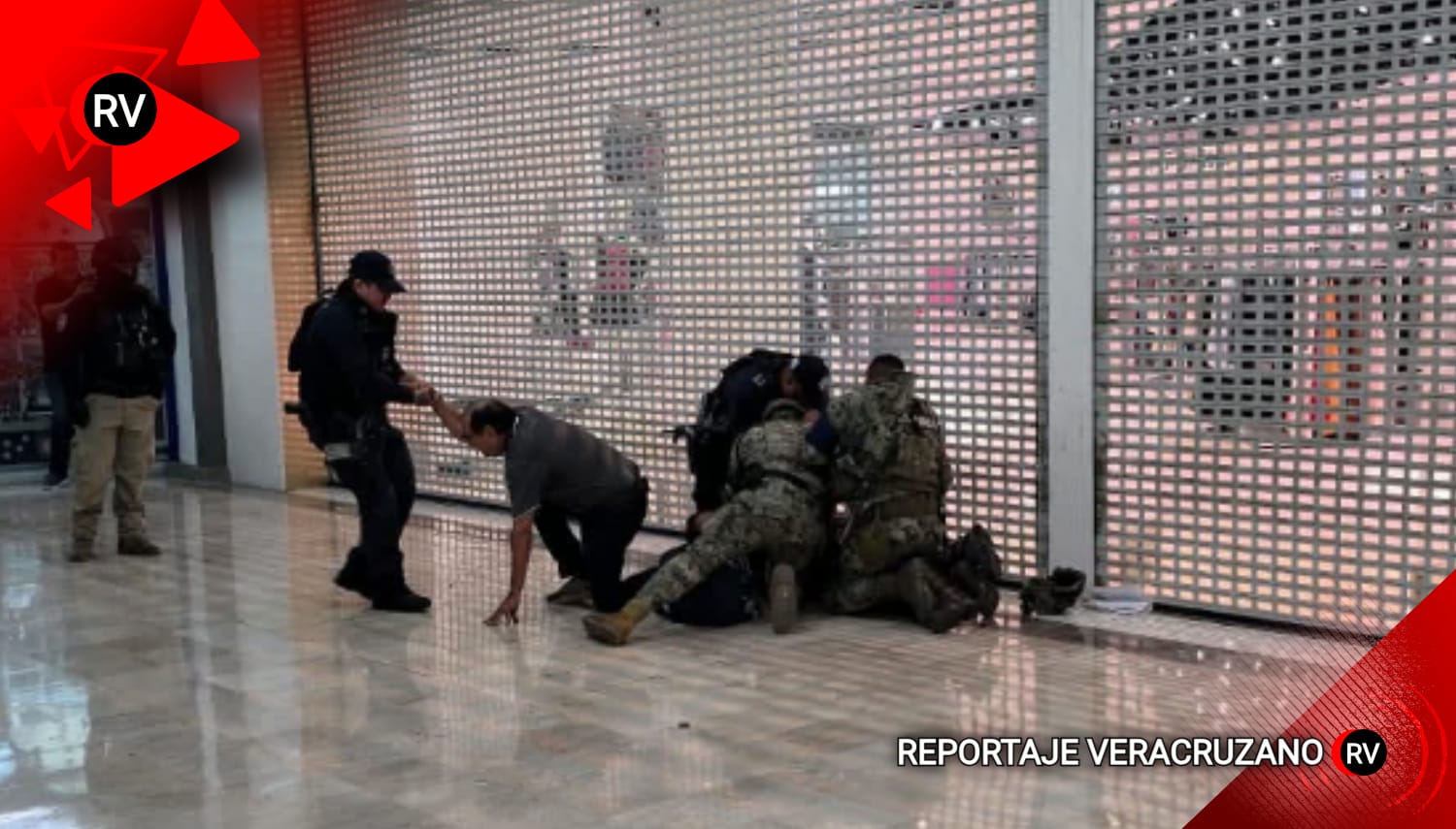 Veracruz, Ver.– La tarde de este lunes, Plaza Américas se convirtió en escenario de una intensa movilización policiaca tras un episodio que mantiene en vilo a comerciantes y visitantes. Un hombre de unos 40 años ingresó corriendo a la sucursal bancaria Santander, gritando que lo perseguían, y se encerró dentro junto a su padre, a quien impide salir.