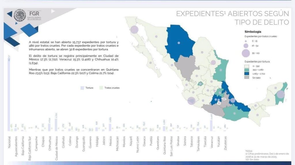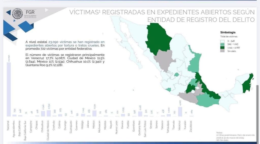 Xalapa, Ver. — Veracruz vuelve a encabezar una lista infame: es el estado con más víctimas de tortura y tratos crueles en todo el país. Según cifras oficiales de la Fiscalía General de la República (FGR), el 17.7% de todas las víctimas registradas entre 2018 y 2025 fueron veracruzanas. En total, 4 mil 87 personas sufrieron tortura, tratos inhumanos o degradantes en este periodo.