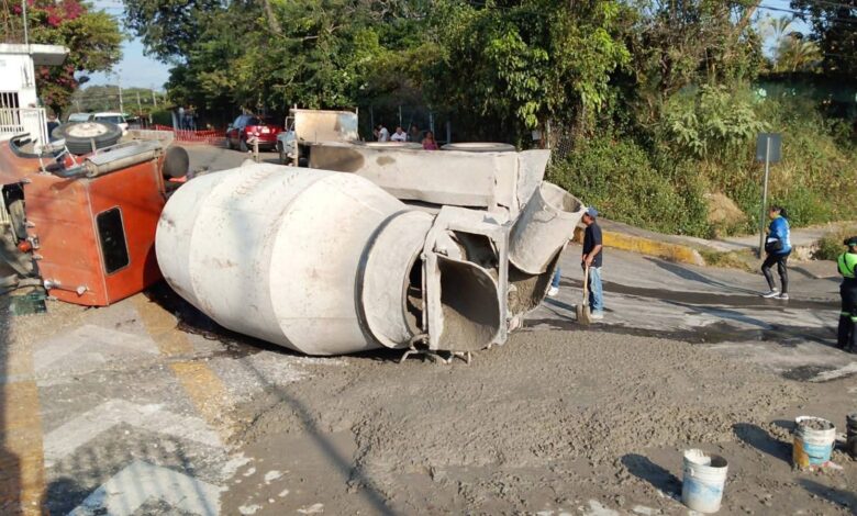 Córdoba, Ver.– Una revolvedora cargada con mezcla de cemento terminó volcada la tarde de este martes sobre la carretera Córdoba–Amatlán, a la altura de la calle 49, luego de que el operador perdiera estabilidad al intentar tomar una vuelta procedente del Ingenio San Miguelito.