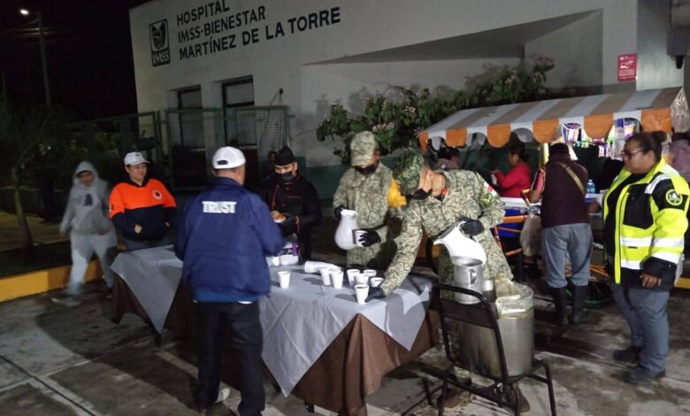 Abrigo solidario ante el frío: Protección Civil y Ejército llevan alimentos calientes a hospitales de Martínez de la Torre