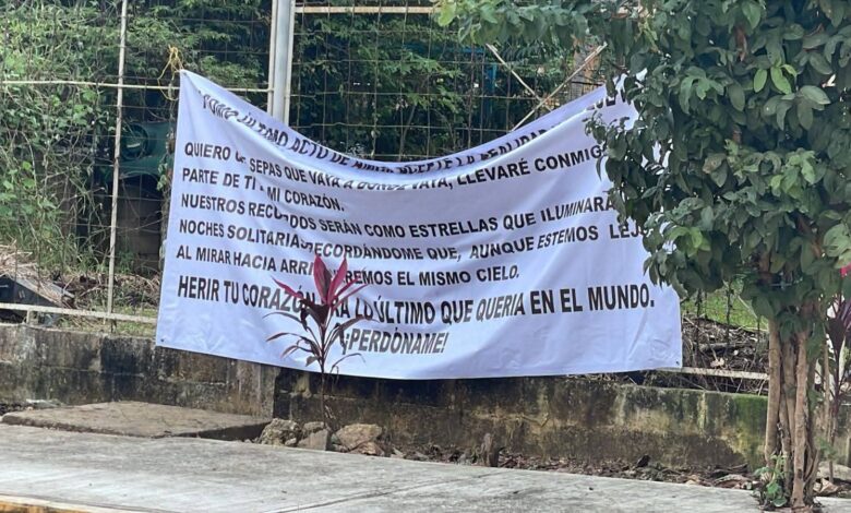 Acayucan, Ver. — Lo que comenzó como un gesto desesperado —una carta de perdón extendida en forma de lona— terminó convirtiéndose en un operativo policiaco que movilizó a varias corporaciones en Acayucan. La tarde de este miércoles 10 de diciembre, mensajes de desamor aparecieron colgados en distintos puntos del municipio, confundiendo a vecinos que, ante la inseguridad reinante, temieron que se tratara de amenazas del crimen organizado.
