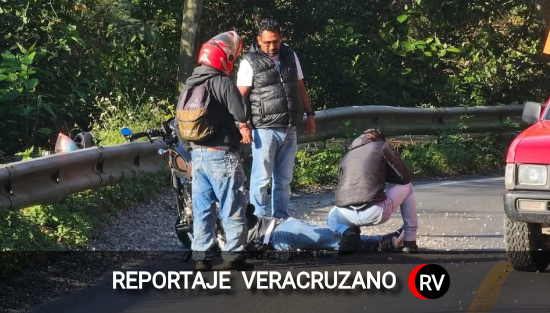 Esta mañana se registró un percance vial en la carretera que une los municipios de Tlilapan y San Andrés Tenejapan, en la zona centro montañosa de Veracruz, cuando un motociclista perdió el control de su vehículo y terminó tendido sobre el asfalto.
