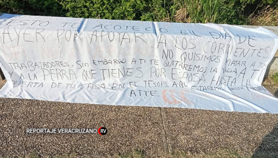 La advertencia, plasmada en una lona y colocada sobre una banca de concreto en la avenida Primero de Mayo, fue detectada por habitantes de la zona durante las primeras horas del día. De acuerdo con los primeros reportes, el material habría sido dejado durante la madrugada, sin que se observara a los responsables.