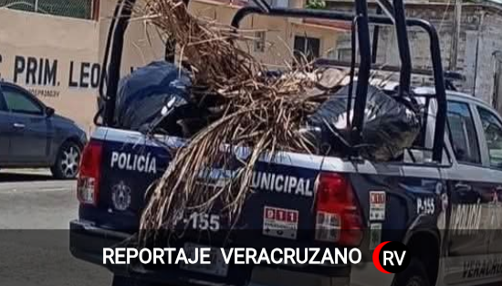 Ante el desbordamiento del problema, el Ayuntamiento recurrió a una medida tan improvisada como alarmante: utilizar unidades destinadas a la seguridad ciudadana para tareas de recolección de desechos. La escena fue captada a las afueras del Departamento de Limpia Pública, en la avenida Nicolás Bravo, en pleno Centro del puerto, donde patrullas municipales realizan labores que no les corresponden.