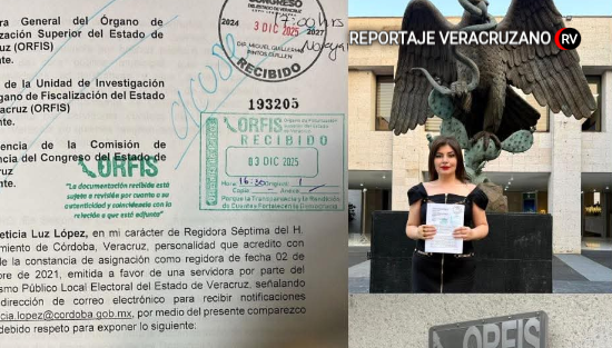 Córdoba, Ver. — Lo que la administración de Juan Martínez Flores intentó mantener bajo llave durante años terminó estallando este 3 de diciembre en el corazón del Congreso de Veracruz. La regidora Olga Leticia Luz López llegó al ORFIS y a la Comisión de Vigilancia a depositar un expediente que, según su propio contenido, retrata un oscuro patrón de malversación de recursos públicos federales y del Fideicomiso de Parquímetros.