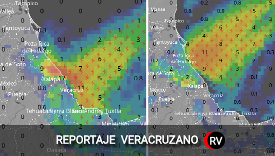 Poza Rica, Coatzintla, Papantla, Espinal, Coyutla, Tecolutla, Cazones de Herrera y Tihuatlán registran un ambiente más húmedo, con lluvias que podrían alcanzar acumulados de hasta 55 mm, principalmente en las cuencas bajas.