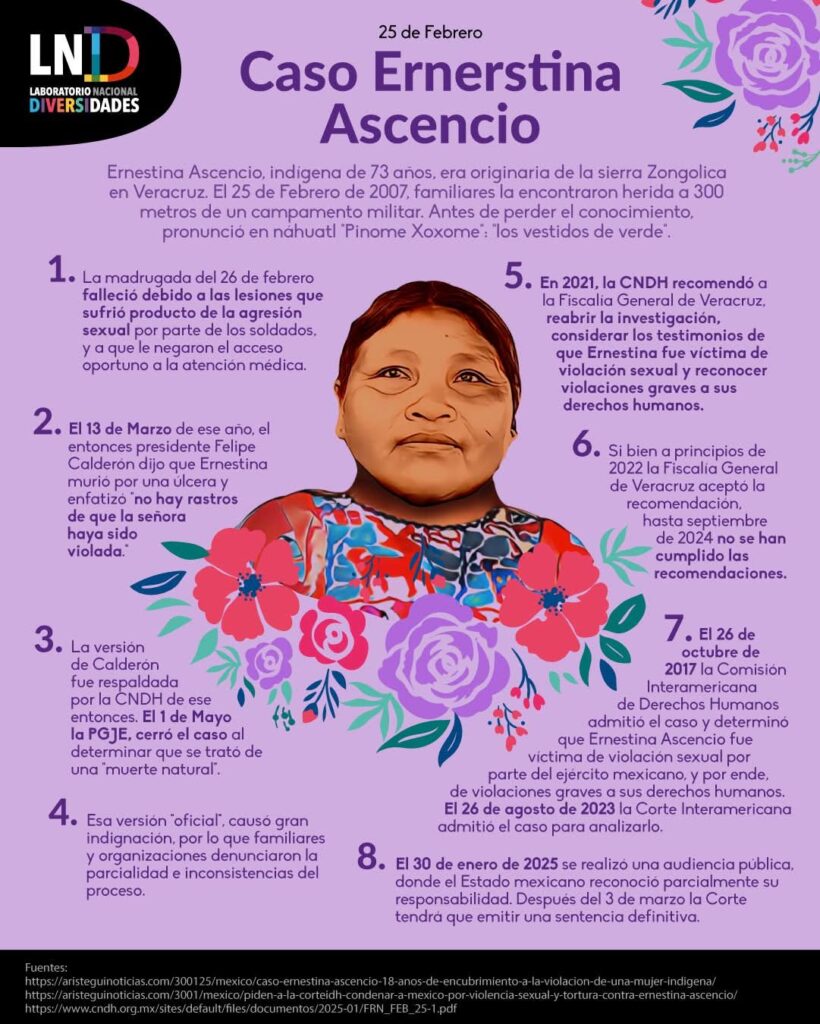 La resolución es clara y sin ambigüedades. Ernestina Ascencio fue violada por elementos del Ejército mexicano el 25 de febrero de 2007, en un contexto de militarización derivado de la estrategia de “guerra contra el narcotráfico” impulsada desde 2006 por el entonces presidente Felipe Calderón Hinojosa. Un campamento militar había sido instalado un día antes a escasos metros de su vivienda en la comunidad de Tetlalzinga, municipio de Soledad Atzompa.