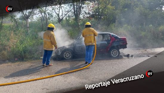 Auto es consumido por el fuego y queda abandonado en carretera de Las Choapas
