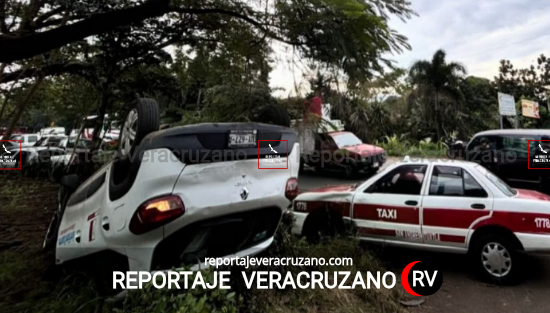 Tras la colisión, la camioneta de la empresa de telecomunicaciones terminó volcada con las llantas hacia arriba, mientras que el taxi salió proyectado contra un señalamiento vial ubicado a un costado de la carretera. El choque dejó importantes daños materiales en ambas unidades, aunque, de manera fortuita, no se reportaron víctimas graves.