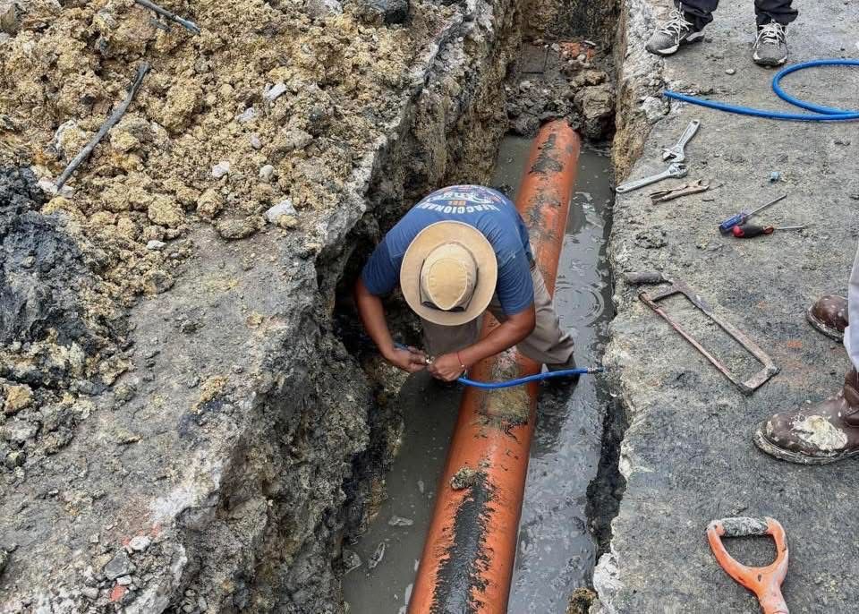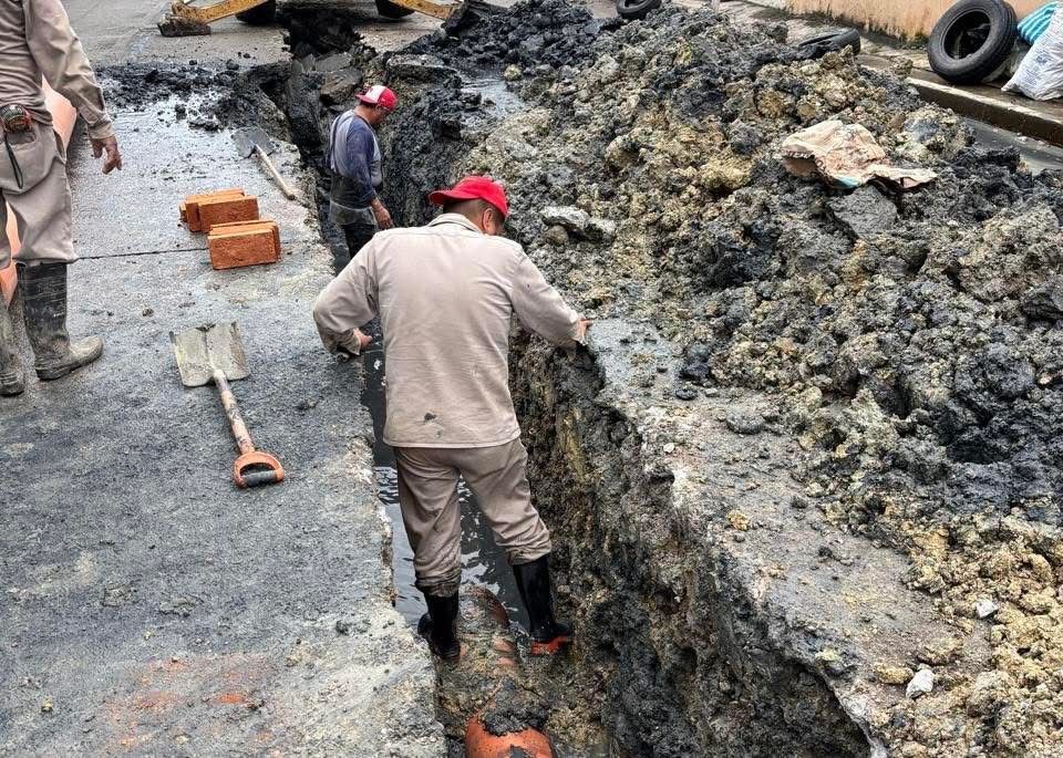 Poza Rica, Ver.– El Gobierno de Poza Rica atendió de manera oportuna la ruptura de un tramo del drenaje sanitario en la calle Papantla, ubicada en la colonia La Ceiba, donde se registraba una fuga constante de aguas negras que representaba un riesgo para la salud de las y los vecinos.