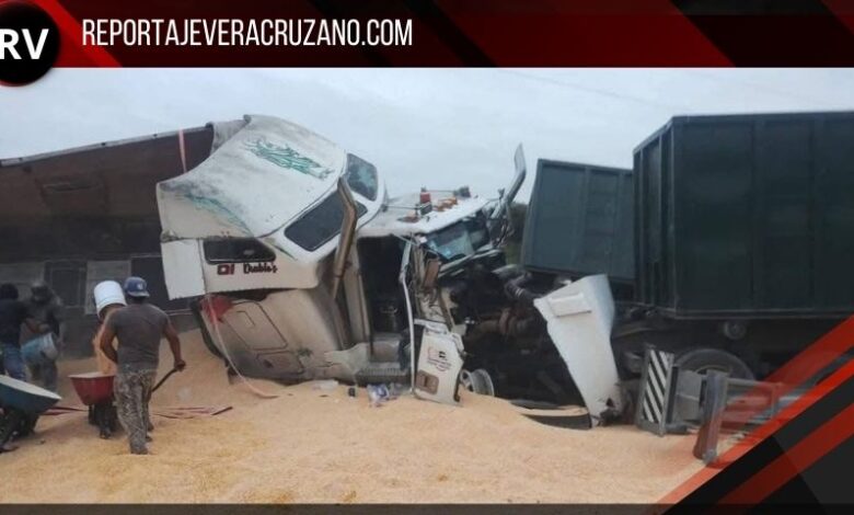 Cotaxtla, Ver.- Un tráiler de doble remolque que transportaba granos volcó la mañana de este martes sobre la autopista Córdoba–Veracruz, lo que provocó afectaciones a la circulación y movilización de cuerpos de emergencia.