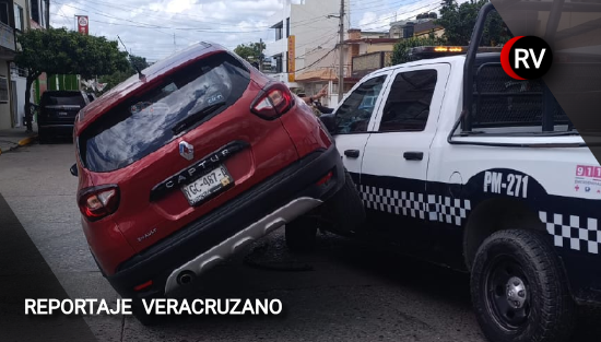 El incidente ocurrió en el cruce de las calles Perú y Costa Rica. De acuerdo con los primeros reportes, la unidad oficial marcada como PM271 colisionó con una camioneta Renault color rojo, siendo esta última la que recibió el golpe principal en la parte frontal. La patrulla también presentó daños visibles tras el encontronazo.