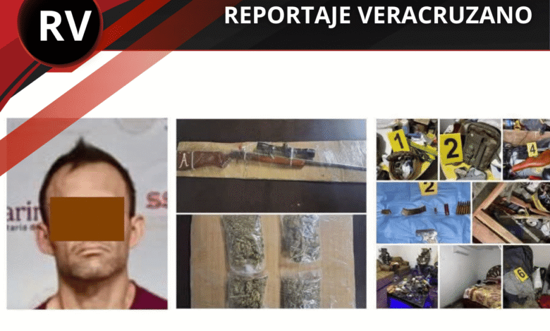 La Antigua, Ver.— Un cateo coordinado entre autoridades estatales y federales derivó en la detención de un hombre y el aseguramiento de armas, cartuchos y presunta droga en la localidad El Hatillo.