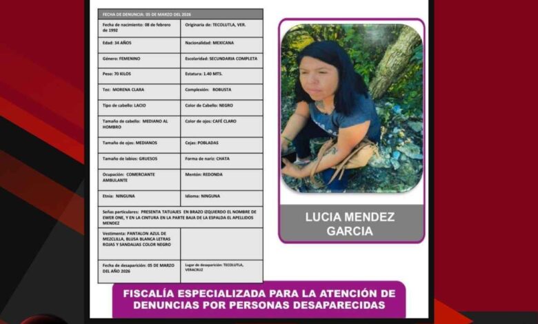 Tecolutla, Ver.– Se han cumplido cuatro días desde que Lucía Méndez García fue privada de su libertad de manera violenta en este municipio, y hasta el momento, las autoridades estatales no han reportado avances significativos que permitan su localización. El suceso, ocurrido el pasado 5 de marzo, ha generado una profunda consternación y una creciente demanda de justicia por parte de los habitantes de la región costera.