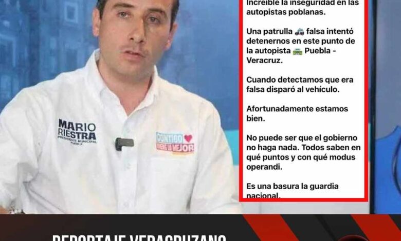 Quecholac, Pue. – La inseguridad en la autopista Puebla–Veracruz alcanzó un nuevo nivel de violencia este miércoles, luego de que el dirigente estatal del Partido Acción Nacional (PAN) en Puebla, Mario Riestra Piña, fuera víctima de un ataque armado tras evadir un retén instalado por delincuentes que operaban con una patrulla clonada.