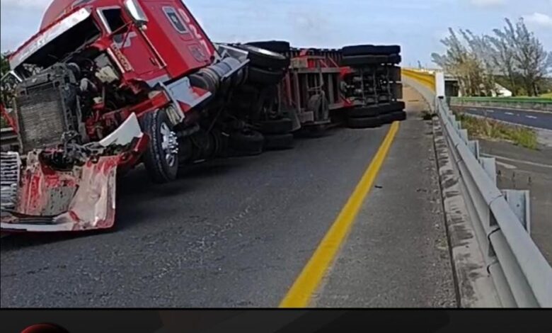 Fuerte accidente de tractocamión paraliza la autopista Tihuatlán-Tuxpan