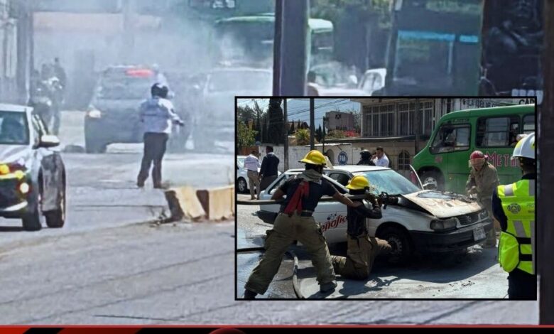 Bomberos Paramédicos Metropolitanos sofocaron el siniestro en un Nissan Tsuru sobre Camino Nacional; no se reportan personas lesionadas.