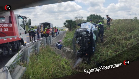 Tuxpan, Ver.— Un fuerte accidente vial se registró sobre la autopista Tuxpan–Totomoxtle, donde un vehículo particular terminó completamente volcado fuera de la carpeta asfáltica, luego de que su conductor perdiera el control en circunstancias aún no esclarecidas.