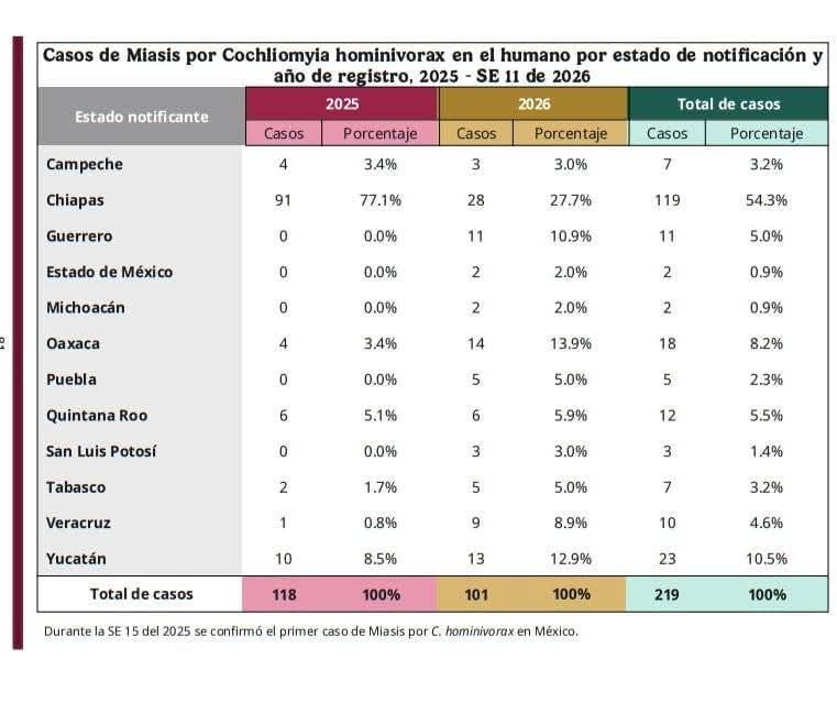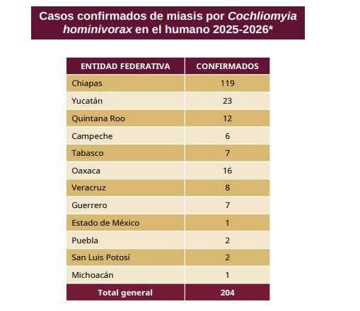 Xalapa, Ver.— Sin hacer demasiado ruido, pero con implicaciones graves para la salud pública, Veracruz acumula ya 10 casos confirmados de miasis provocada por la mosca Cochliomyia hominivorax, conocida como la enfermedad del gusano barrenador, de acuerdo con el más reciente reporte epidemiológico.