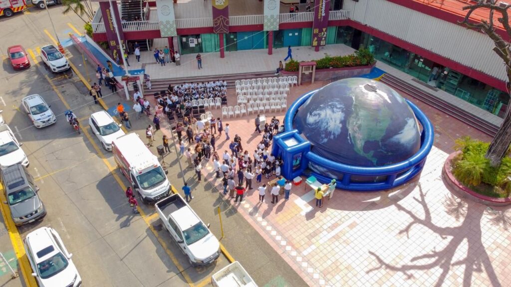 Instalado de manera temporal, este domo inflable ofreció una experiencia educativa en tercera dimensión, donde los asistentes pudieron adentrarse en el estudio del planeta Tierra, el universo y la relación entre la humanidad y su entorno natural, a través de documentales diseñados para despertar la curiosidad y el pensamiento crítico.