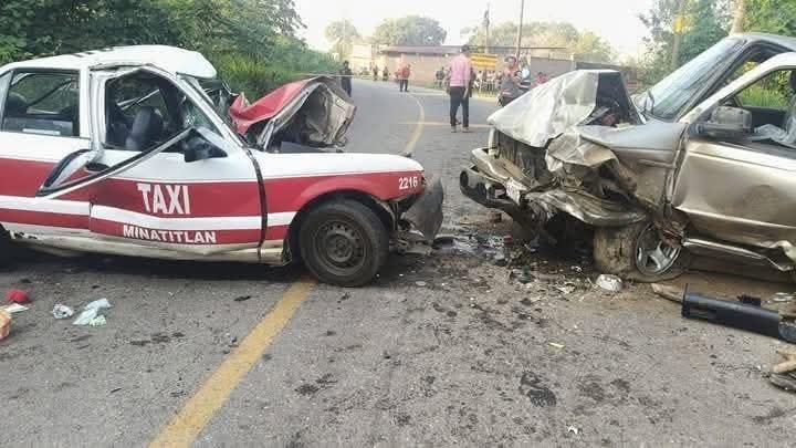 El siniestro se registró alrededor de las 16:15 horas sobre la carretera estatal Chinameca–Chacalapa, a la altura del punto conocido como “Taller Viejo”, cerca de la desviación a Cerritos. En ese tramo, dos vehículos protagonizaron un impacto brutal: un taxi con número económico 2216 de Minatitlán y una camioneta pickup Ford Ranger.