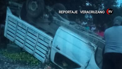 Cinco jornaleros lesionados tras volcadura de camioneta con limón persa en Papantla