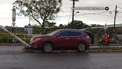 Camioneta se impacta contra poste de alumbrado en Tuxpan; conductor huye tras doble colisión