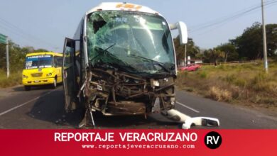 Imprudencia al volante casi desata tragedia en Medellín de Bravo: autobús de pasajeros choca con camión de carga