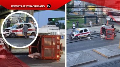 Choque y volcadura en bulevar Central Oriente deja daños por miles de pesos en Poza Rica