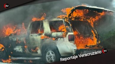 Fuego interrumpe la calma en la autopista Cardel–Xalapa: camioneta queda calcinada