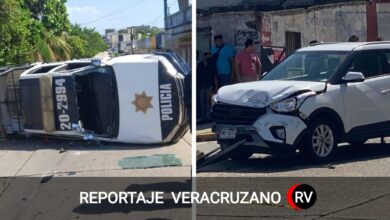 Imprudencia al volante: patrulla de la SSP protagoniza fuerte choque y volcadura en Coatzacoalcos